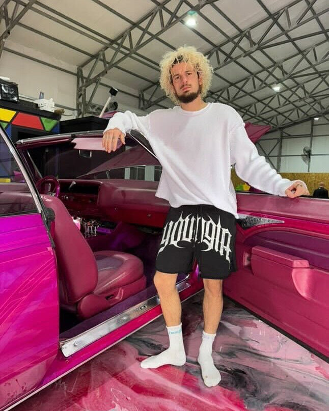 DESIGN: Introducing the Dark Wave Shorts ¡ª built off the blueprint of our best-selling joggers, now in a bold, summer-ready cut. Crafted from heavyweight 100% cotton at 540 GSM, these shorts feature a baggy, longer fit with an acid-washed finish for a worn-in, vintage edge.